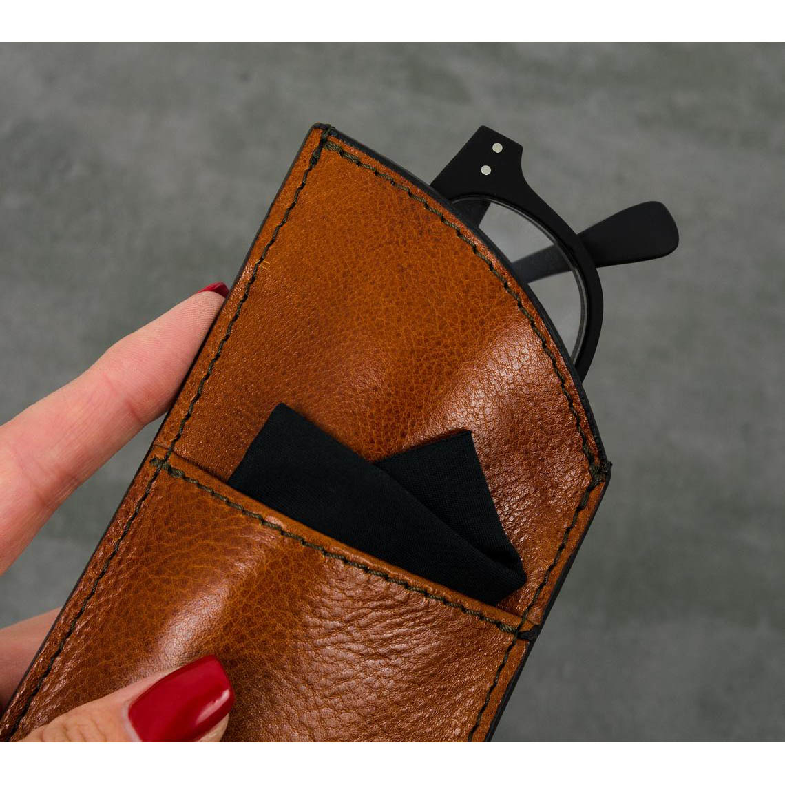 Pagaminta iš aukštos kokybės itališkos odos ir pasižymi unikaliu stiliumi bei patvarumu. Dizainas su atskira kišenėlė stiklo servetėlėms. Minimalistinis praktiškas dizainas - puikiai tinka studentams, tėvams, seneliams. Pritaikomas namie, darbe ir kelionėse. Skaitymo akinių odinis dėklas taps Jūsų ypatingu draugu. Lengva ir paprasta išimti, svarbiausia saugiai laikyti.