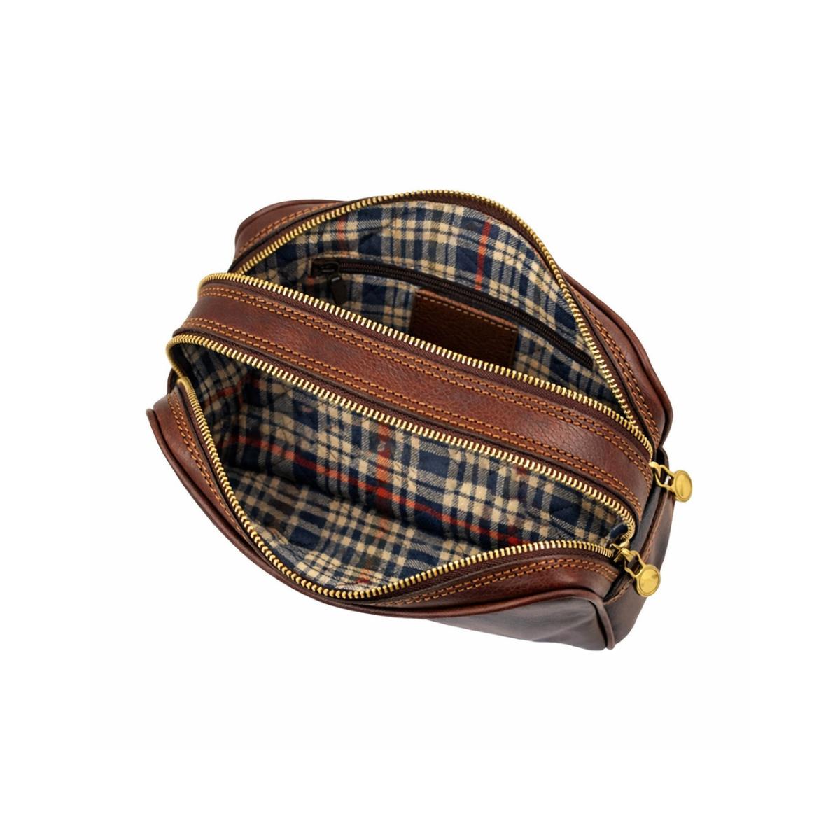 Paprastas ir klasikinis dizainas, patogiai suplanuotas, kad atitiktų kiekvieno vyro poreikius. Augalinio rauginimo odos kokybiškas kosmetikos / higieninių reikmenų krepšys vyrams (ir moterims). Du atskiri skyriai yra pakankamai erdvūs, kad tilptų viskas, ko reikia. Dvi vidinės kišenės daiktams atskirti vieniems nuo kitų. Natūralios odos kelioninis krepšys, rankinė, kosmetinė naudinga dovana kiekvienam.