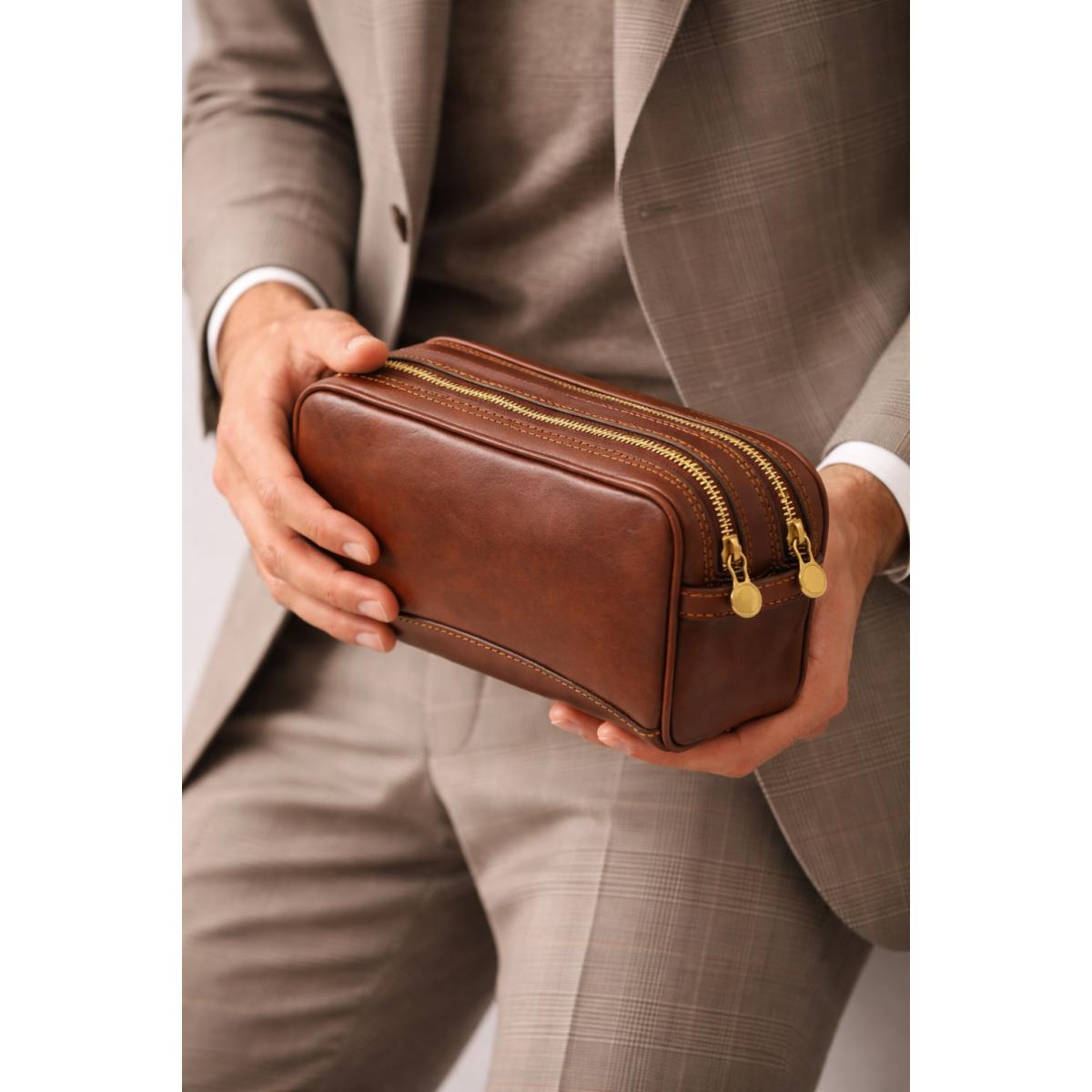 Odinis kelionių dėklas higienos prekėms - natūralios odos krepšys atostogoms. Rankų darbo natūralios odos higieninių reikmenų krepšys, verslo dovana. Prabangios dovanos gimtadieniui, sukaktuvėms, praktiškos ir prabangios dovanos įmonėms.