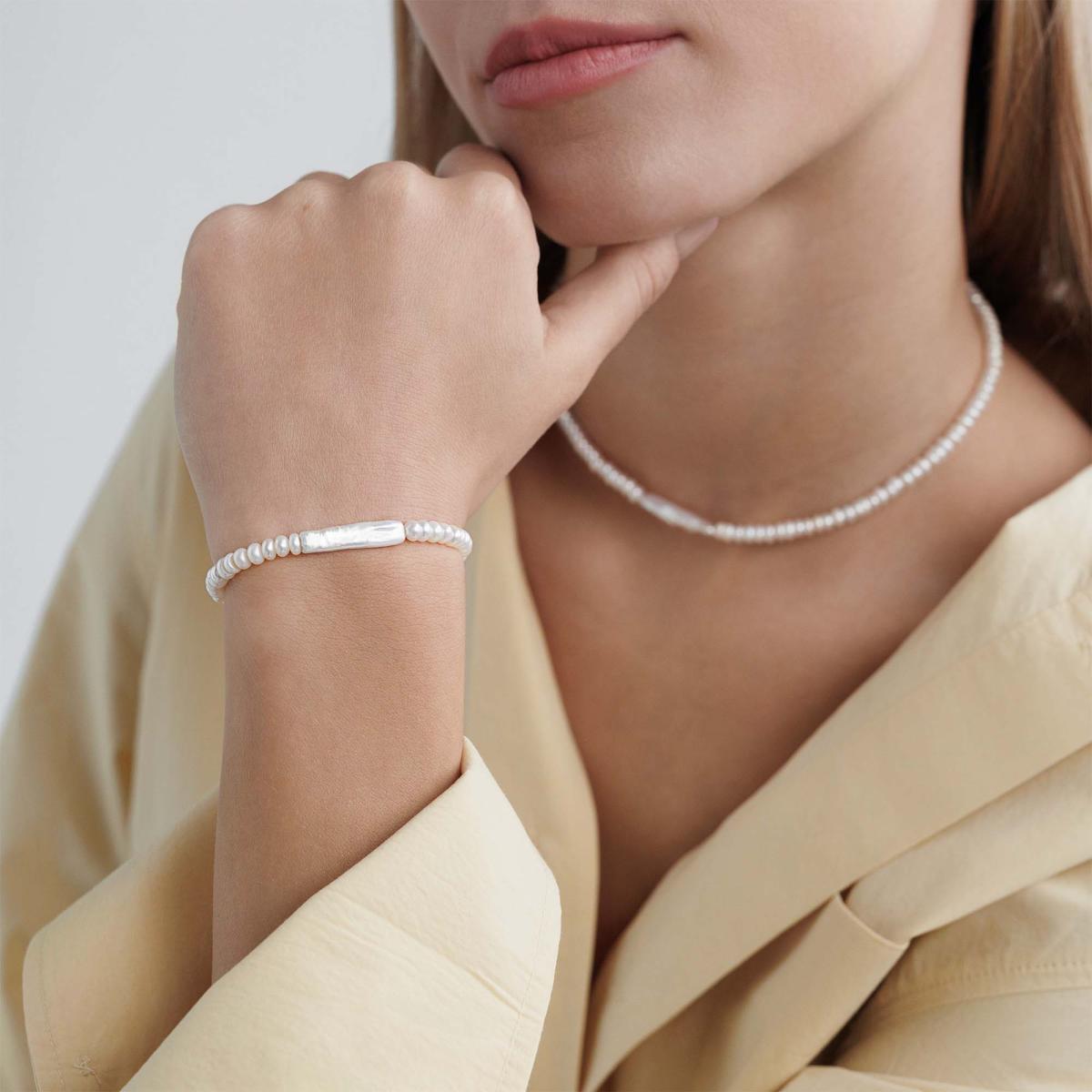 Sidabrinė perlų apyrankė su tikrais perliukais, Išskirtinio dizaino, riboto leidimo, minimalistinė moteriška apyrankė