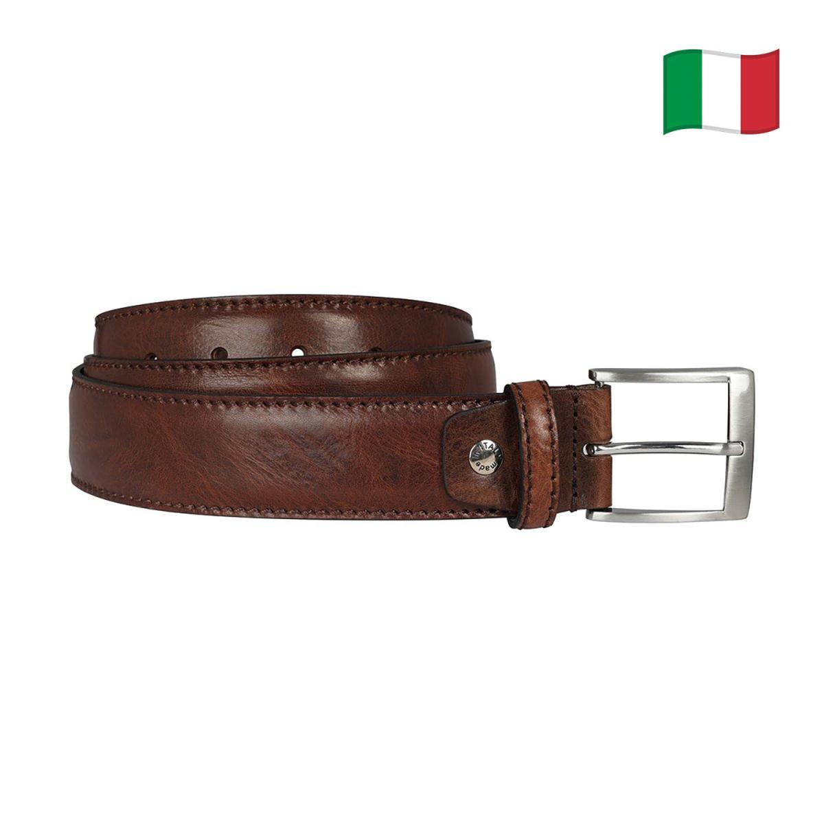 Šis diržas pagamintas iš aukštos kokybės natūralios itališkos odos, kuri laikui bėgant tik gražėja. Aplinkinis apsiuvimas ir storesnė odos struktūra suteikia papildomo tvirtumo – tai aksesuaras, kurio neįmanoma palyginti su masinės gamybos diržais. Kiekvienas diržas siuvamas rankomis, todėl išlaikoma nepriekaištinga kokybė ir tikslumas.