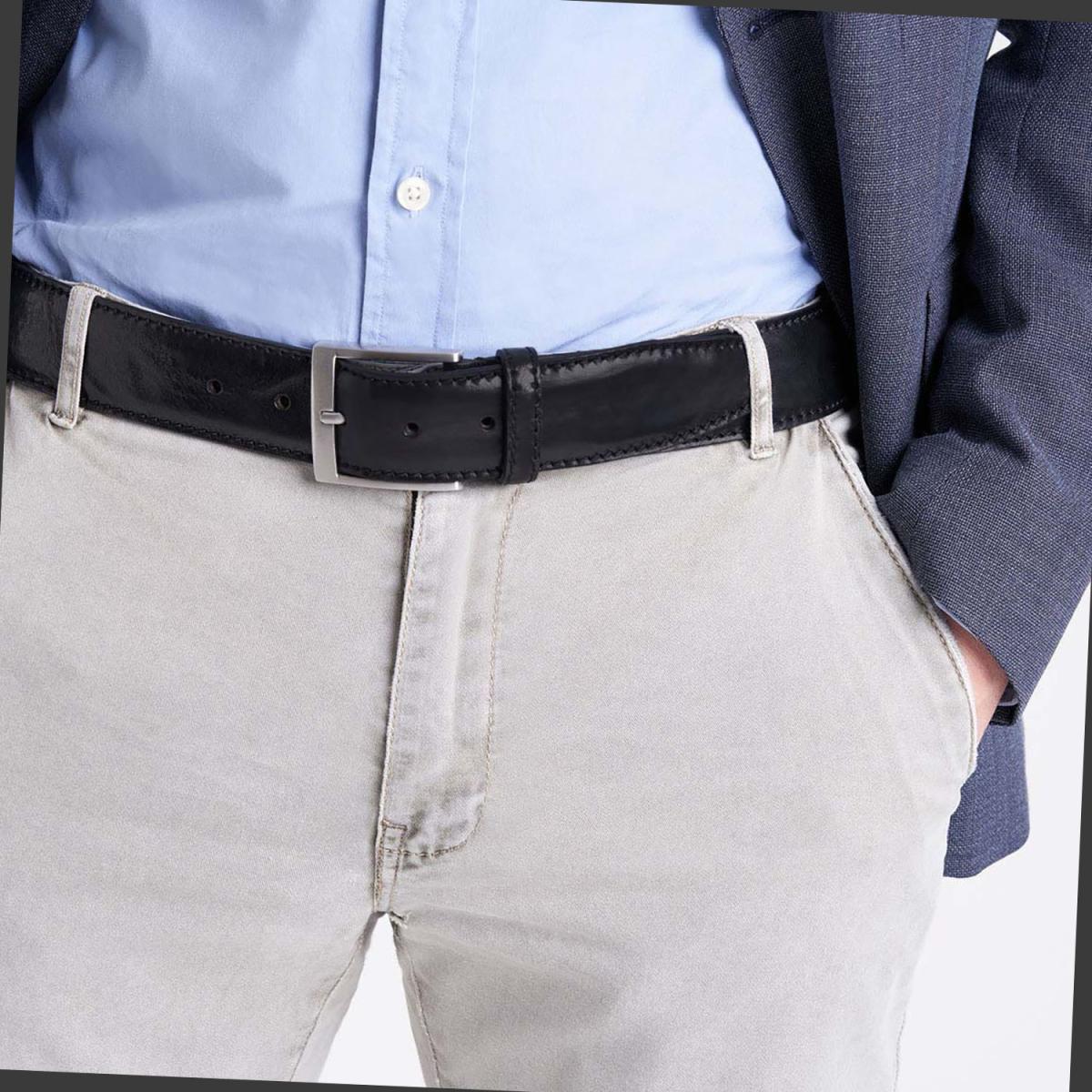Galite rinktis juodą arba rudą diržą, abu derantys prie kasdienės, dalykinės ar šventinės aprangos. Patvari metalinė sagtis ir storesnis odos sluoksnis užtikrina, kad diržas tarnaus daugelį metų. Tai aksesuaras vyrui, kuris vertina kokybę, paprastumą ir tikrą medžiagų pojūtį.