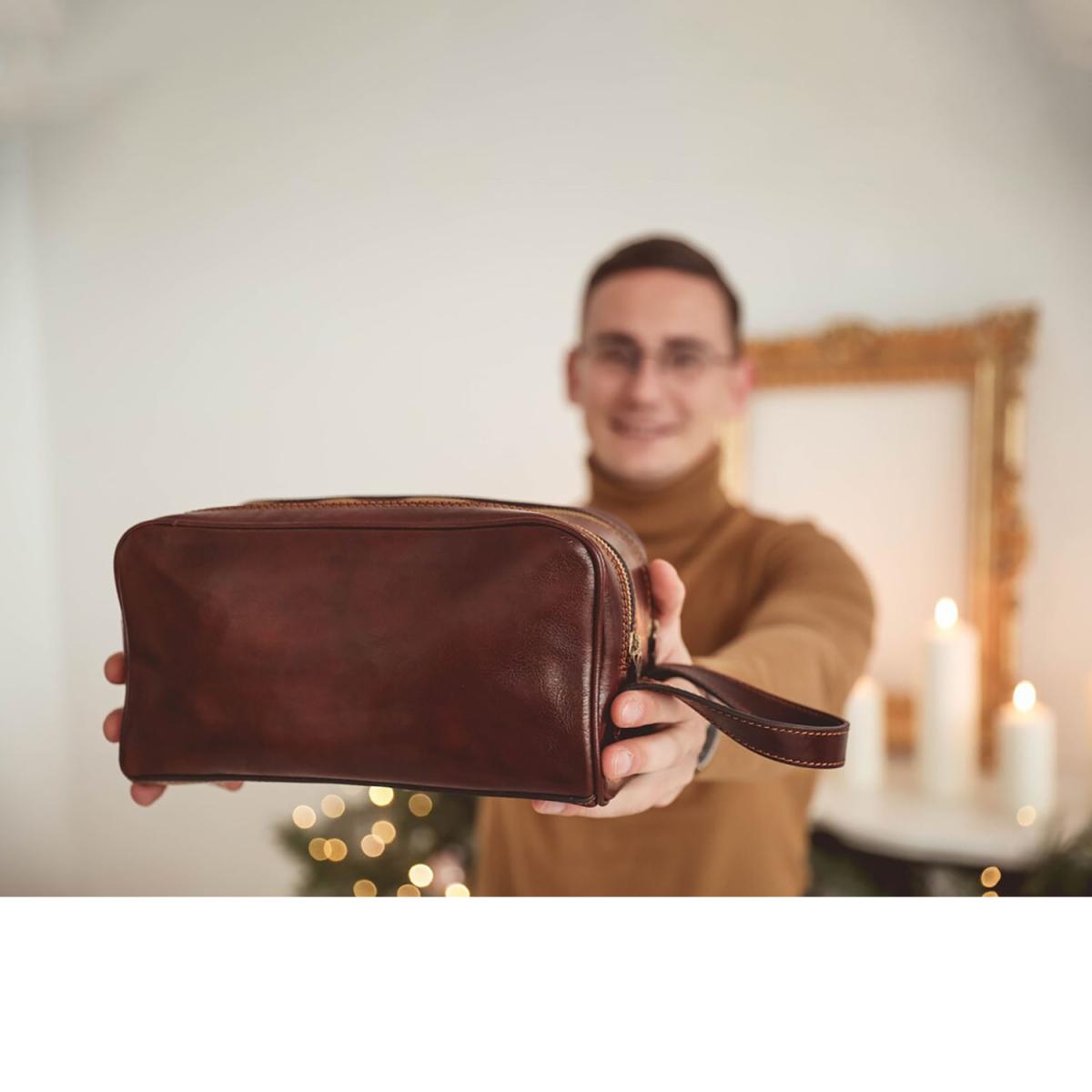 Suasmeninta odinė kosmetinė kelionėms – dovana su inicialais ir žinute