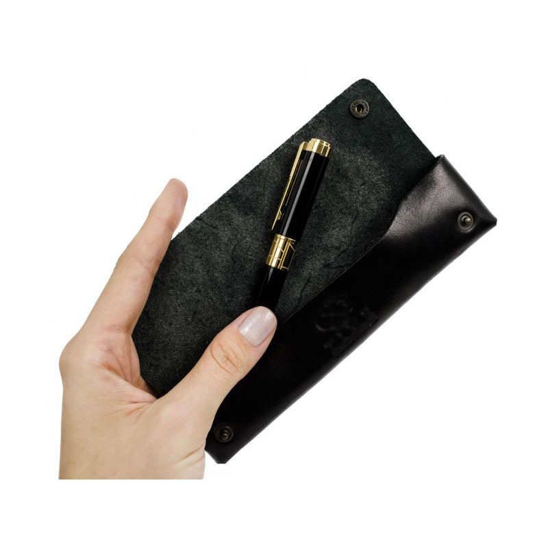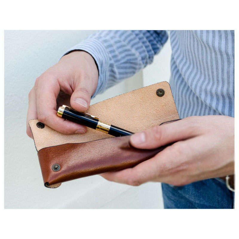 Prie prabangaus odinio dėklo pasirinkite rašiklį arba plunksnakotį.