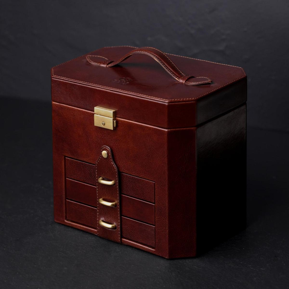 Didelė papuošalų dėžutė iš itališkos kvepiančios odos. Prabangi jubiliejaus ar Kalėdų dovana moterims.